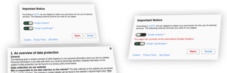 GDPR Notice (Original) — WordPress Plugins This plugin helps you make GDPR compliant by informing the user about the use of not internal services when they first visit page. in the past
