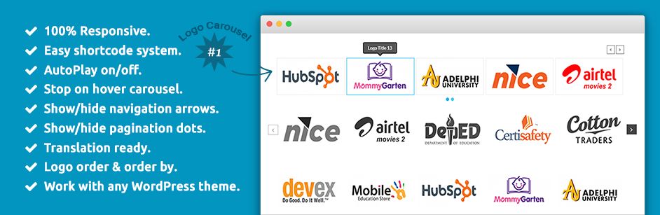 Logo Carousel is WordPress Carousel plugin that helps you to display list of logos of clients or Logo, partners, and affiliates along with different ways like Grid, Slider and Isotope Filtering by wise, Tooltip and website URL anywhere of your site using Shortcodes quickly easily.
