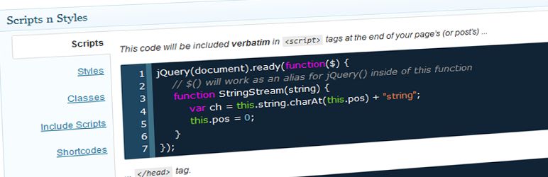 Scripts n Styles This plugin allows Admin users the ability to add custom CSS and JavaScript directly into individual Post, Pages or any other registered custom post types. in the past