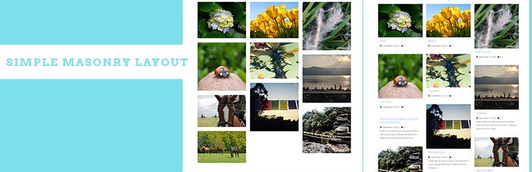 Simple Masonry Layout Simple Masonry Layout plugin with simple shortcode, You can add Masonry Layout For Posts, custom post types .And Even Masonry Layout Gallery For Posts and custom post type. in the past