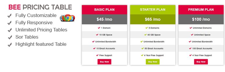 Pricing Table Pricing Table is simple and user friendly responsive pricing table with fully customizable like header, pricing column, buttons and more pricing table allows you to create unlimited pricing tables publish pricing table on WordPress page or post content. in the past