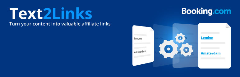Booking.com Text2Links Text2link is Booking com WordPress plugin that makes it easy for you to increase bookings automatically replacing destination names with Booking com affiliate deep-links.. in the past