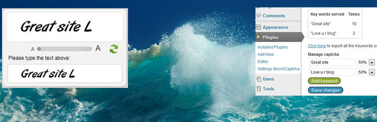 Boom Captcha Boomcaptcha CAPTCHA Protect your website from spams using encrypted text and paired with matching web fonts so user will see the text clearly while the spam programs see the underlying encrypted text. in the past