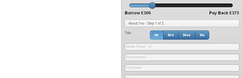 Pay Day Loan Application form plugin for WordPress After installing and activiating the plugin you will be able to add full pay day loan functionality to your site using simple shortcode in your pages and posts. in the past
